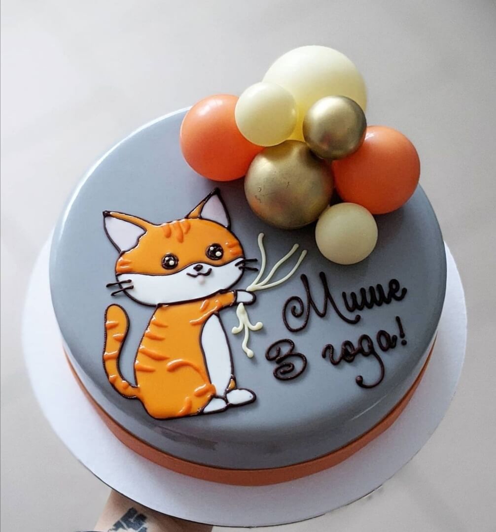 Праздничный тортик с праздничным котиком на день рождения вашего малыша