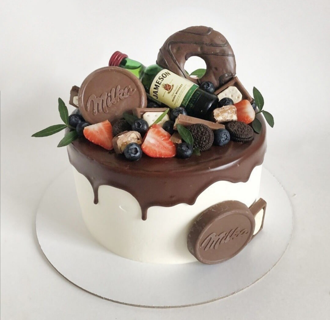 Кокетливо добавленная в декор бутылочка Jameson будет приятным бонусом к вкусному торту для любого мужчины
